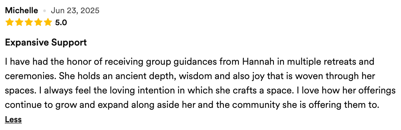 The program is calibrated to be in sync with the natural flow of energy we experience in the world. Ancient feminine wisdom shows us that there is different energetics during the full and new moon, so we will attune to these subtle rhythms. We will be gathering digitally for a "council call," once a month, near the new moon 🌚 - so that you can stay home with your family, rest or travel as you may need with more flexibility and ease. These Council Call gatherings will be on Zoom, on Sundays, once a month, from 3-6pm PST.