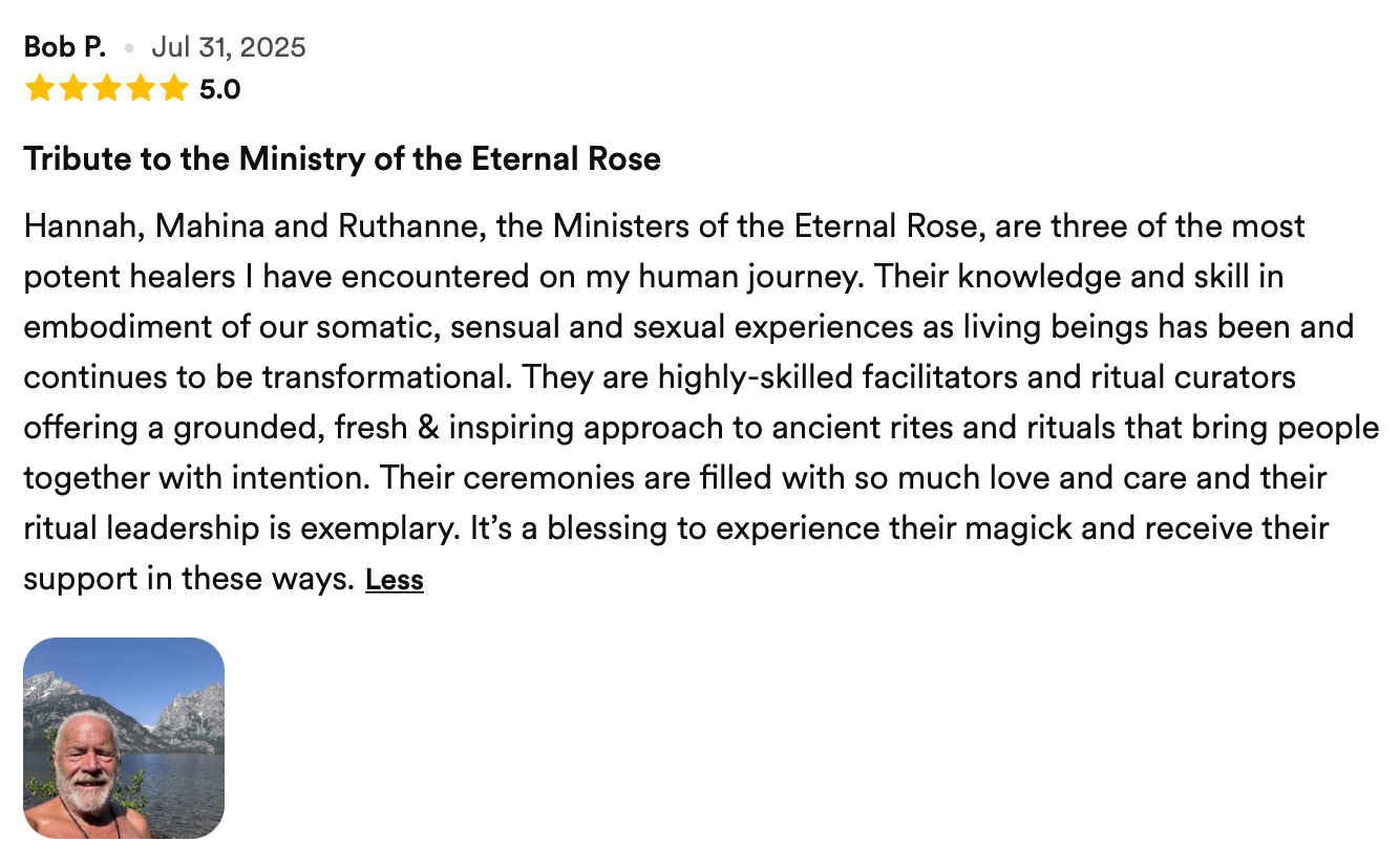 We will also gather in-person, for a 4-hour ceremonial embodiment intensive, near the full moon 🌝, from 3-7pm PST, once a month, within an hour of the Seattle Area, with an optional social hour / dinner from 7-8pm.